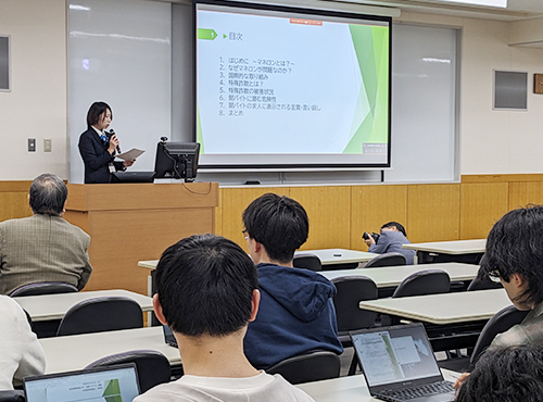 同校の経営情報学部1年生約200名がメイン会場と各ゼミ会場に分かれ、Webでの配信も行いながら実施されました。 学生の皆さんも真剣な眼差しで講義に集中してくださり、とても有意義な寄附講座となりました。 今後も金融業務に関する様々な分野から講座を提供し、少しでも学生の皆さんのお役に立てればと考えています。