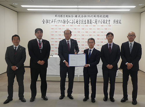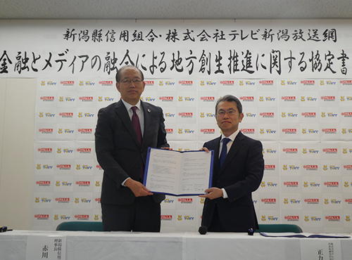 このたび新潟縣信用組合は、令和8年4月15日に株式会社テレビ新潟放送網(TeNY、以下(株)テレビ新潟放送網)と「金融とメディアの融合による地方創生推進に関する協定書」の締結に至りました。