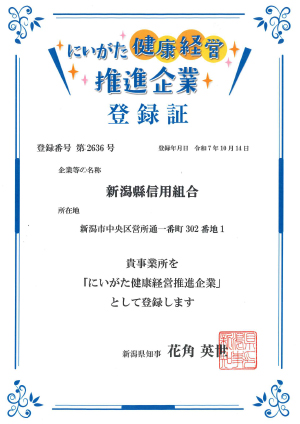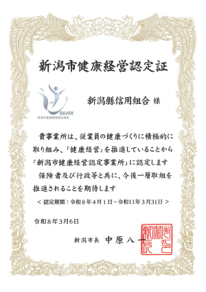 当組合は、地域密着型金融機関として地域社会の持続的な発展のための積極的な活動を行っています。 地域社会への貢献のためには職員の健康づくりが重大な経営課題であることから、職員の健康増進をサポートし職員全員が心身ともに健康に働ける職場環境の整備を進めてまいります。