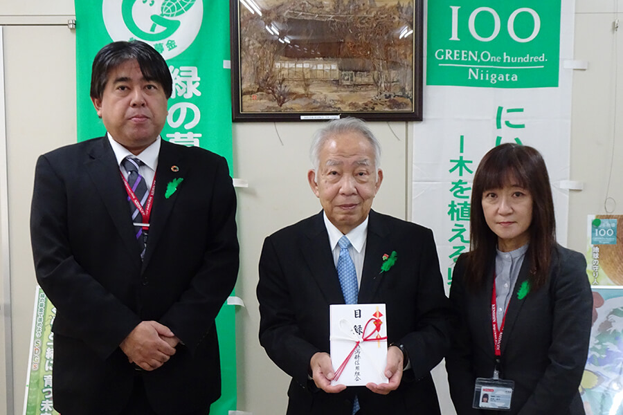 けんしんは、社会貢献活動の一環として、平成20年より、緑化活動に取り組む公益財団法人にいがた緑の百年物物語緑化推進委員会の「にいがた緑の百年物語」活動に協賛しています。
