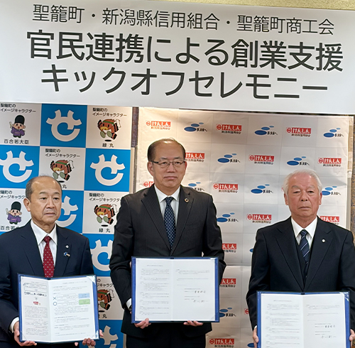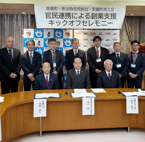 また、本件は聖籠町商工会とも連携し、三位一体となって創業者を支援する取組みであります。本取組みにより聖籠町がさらに飛躍・活性化され、ひいては地域の競争力強化や移住・定着の推進に繋がるお手伝いができればと考えます。
